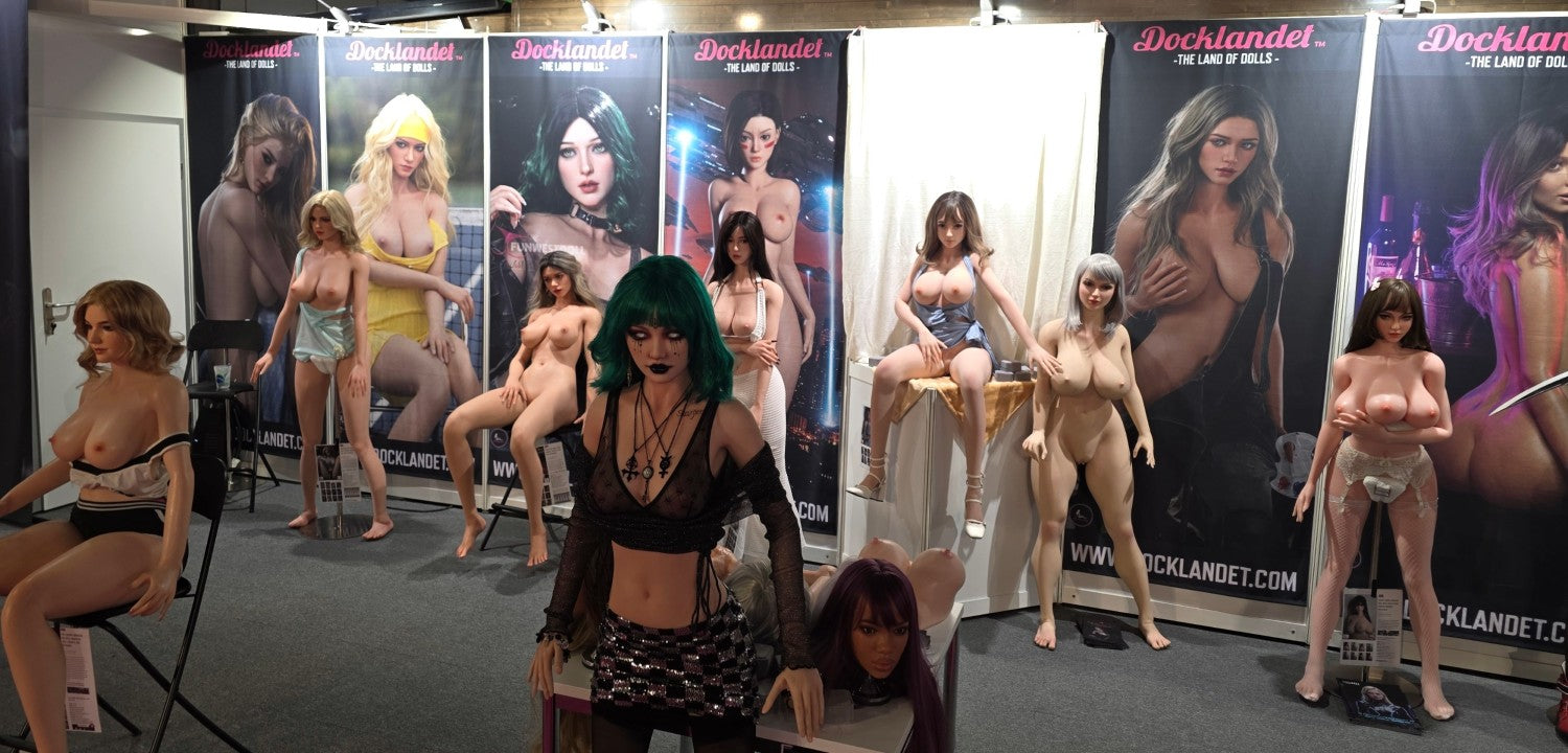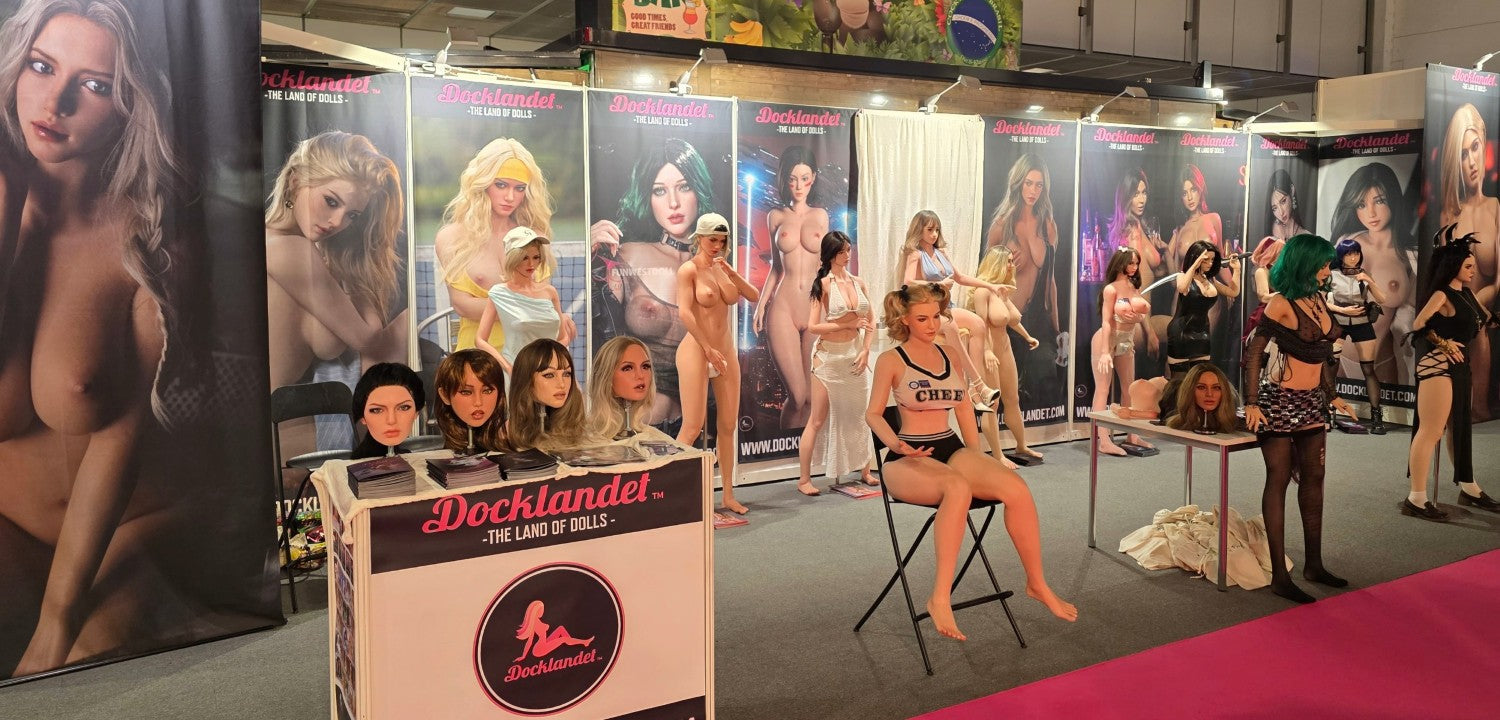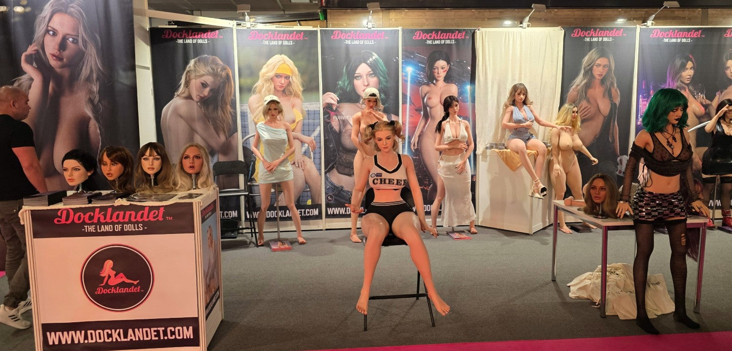 Εμείς στο Docklandet εκπροσώπησαν μερικούς από τους κύριους συνεργάτες μας με τις όμορφες κούκλες τους. Από το TOP-CYDOLL είχαμε 3 κούκλες πλήρους σιλικόνης, την Isabella, την Polly και την Zhimin (από αριστερά προς τα δεξιά). Στη μέση έχουμε την Tracy.B από την SE-Doll το οποίο είναι ένα S-TPE και πραγματικά υπέροχο παρά τη χαμηλή του τιμή. Στη συνέχεια, έχουμε το Noa από τη νέα μάρκα LilyDoll (στενή σχέση με SE-DollΜια προσιτή και υψηλής ποιότητας υβριδική κούκλα με καμπυλωτό σώμα από υλικό S-TPE και ρεαλιστικό κεφάλι από σιλικόνη. Στη συνέχεια βλέπουμε την κούκλα σιλικόνης "Lita.A", μια αποκλειστική κούκλα από την SE-Doll με στυλ εμπνευσμένο από τον χαρακτήρα Alita. Στη συνέχεια έχουμε τον Sakai από το Elsa Babe με τα τρία στήθη, πάντα δημοφιλής, ιδίως μεταξύ εκείνων που δεν έχουν ξαναδεί κούκλες. Στη συνέχεια, στην άκρη δεξιά του περιπτέρου έχουμε δύο κούκλες cosplay από την FunWest Doll. "Sakura" και "Hinata" με στυλ νίντζα εμπνευσμένο από την ιαπωνική σειρά Naruto. ΣΗΜΕΙΩΣΗ! Cosplay σημαίνει μίμηση ενός στυλ, οι κούκλες cosplay δεν είναι επίσημα αδειοδοτημένα προϊόντα. Λίγο πιο πέρα στο περίπτερο είχαμε 3 κούκλες και ένα σωρό κεφάλια στημένα. Irontech Doll's Eila Adams, το οποίο έγινε σε συνεργασία με την πραγματική πορνοστάρ Eila Adams. Η Eila, γνωστή και ως "η γυμνή δημοσιογράφος", έχει επισκεφθεί την έκθεση στο παρελθόν, αλλά φέτος ήταν παρούσα μόνο η κούκλα εκδοχή της. Ευτυχώς που φέραμε την κούκλα για όλους τους θαυμαστές της Eila! Στο κέντρο του περιπτέρου βλέπουμε τη Silvana (συνήθεια Wushi) από την Starpery. Στη συνέχεια, στην άκρη δεξιά έχουμε την Lily με goth στυλ από την FunWest Doll.