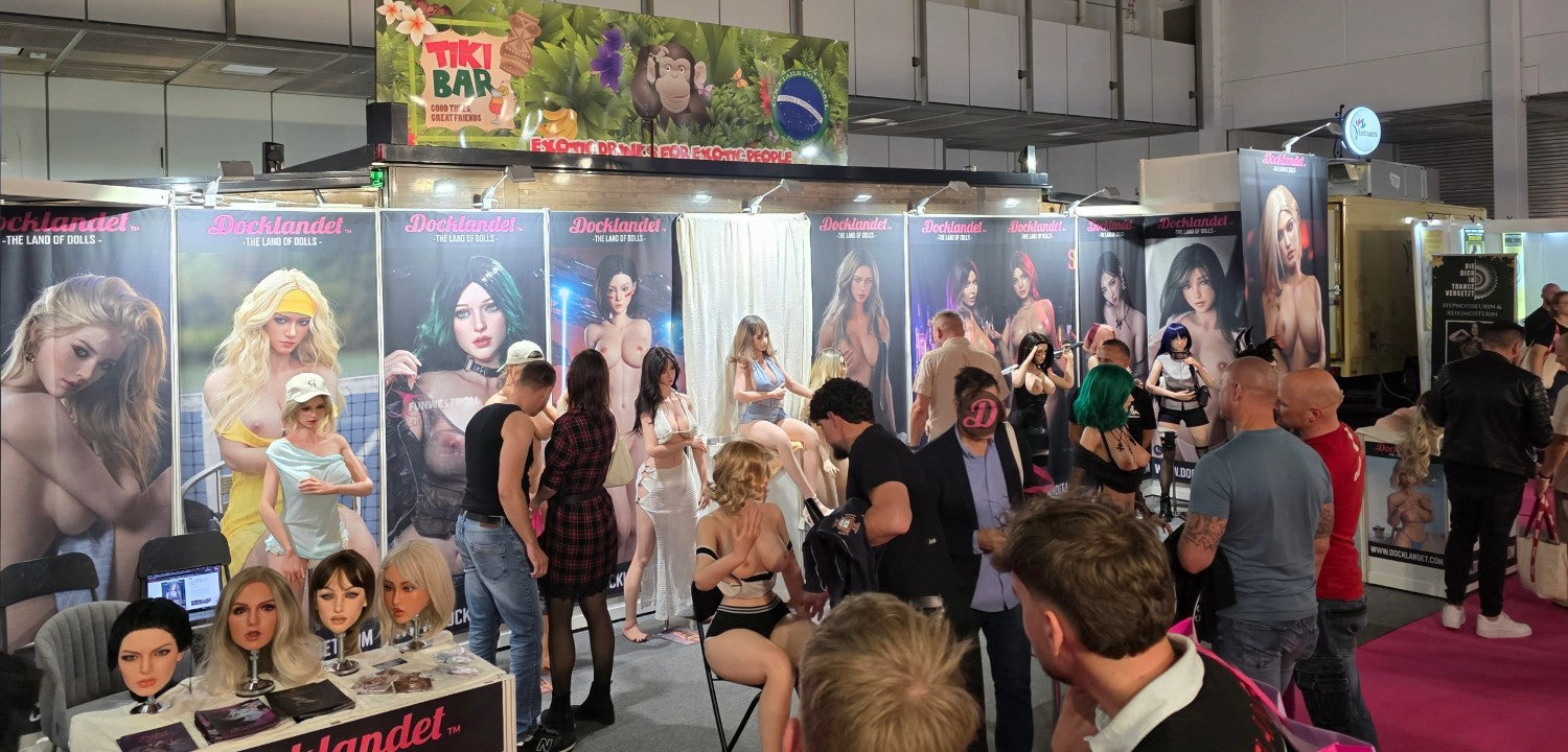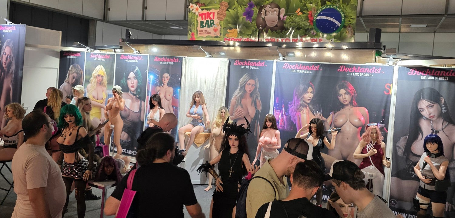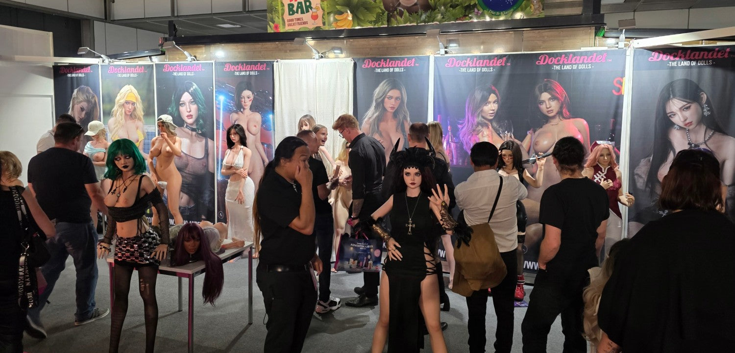 Εμείς στο Docklandet εκπροσώπησαν μερικούς από τους κύριους συνεργάτες μας με τις όμορφες κούκλες τους. Από το TOP-CYDOLL είχαμε 3 κούκλες πλήρους σιλικόνης, την Isabella, την Polly και την Zhimin (από αριστερά προς τα δεξιά). Στη μέση έχουμε την Tracy.B από την SE-Doll το οποίο είναι ένα S-TPE και πραγματικά υπέροχο παρά τη χαμηλή του τιμή. Στη συνέχεια, έχουμε το Noa από τη νέα μάρκα LilyDoll (στενή σχέση με SE-DollΜια προσιτή και υψηλής ποιότητας υβριδική κούκλα με καμπυλωτό σώμα από υλικό S-TPE και ρεαλιστικό κεφάλι από σιλικόνη. Στη συνέχεια βλέπουμε την κούκλα σιλικόνης "Lita.A", μια αποκλειστική κούκλα από την SE-Doll με στυλ εμπνευσμένο από τον χαρακτήρα Alita. Στη συνέχεια έχουμε τον Sakai από το Elsa Babe με τα τρία στήθη, πάντα δημοφιλής, ιδίως μεταξύ εκείνων που δεν έχουν ξαναδεί κούκλες. Στη συνέχεια, στην άκρη δεξιά του περιπτέρου έχουμε δύο κούκλες cosplay από την FunWest Doll. "Sakura" και "Hinata" με στυλ νίντζα εμπνευσμένο από την ιαπωνική σειρά Naruto. ΣΗΜΕΙΩΣΗ! Cosplay σημαίνει μίμηση ενός στυλ, οι κούκλες cosplay δεν είναι επίσημα αδειοδοτημένα προϊόντα. Λίγο πιο πέρα στο περίπτερο είχαμε 3 κούκλες και ένα σωρό κεφάλια στημένα. Irontech Doll's Eila Adams, το οποίο έγινε σε συνεργασία με την πραγματική πορνοστάρ Eila Adams. Η Eila, γνωστή και ως "η γυμνή δημοσιογράφος", έχει επισκεφθεί την έκθεση στο παρελθόν, αλλά φέτος ήταν παρούσα μόνο η κούκλα εκδοχή της. Ευτυχώς που φέραμε την κούκλα για όλους τους θαυμαστές της Eila! Στο κέντρο του περιπτέρου βλέπουμε τη Silvana (συνήθεια Wushi) από την Starpery. Στη συνέχεια, στην άκρη δεξιά έχουμε την Lily με goth στυλ από την FunWest Doll.